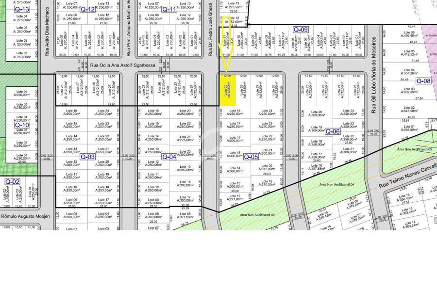 Área Total do Terreno 312,50m² : 12,50m de largura X 25,00m de comprimento.